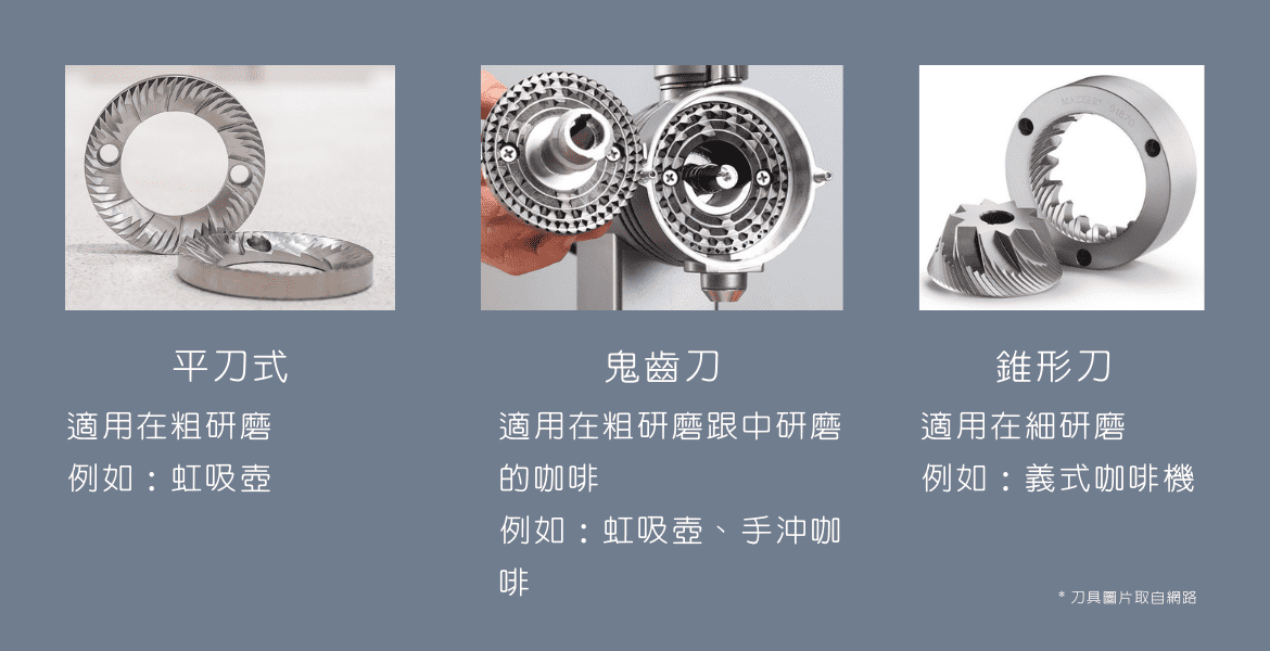 而電動磨豆機再依刀具細分為平刀式、錐形刀、鬼齒刀三項